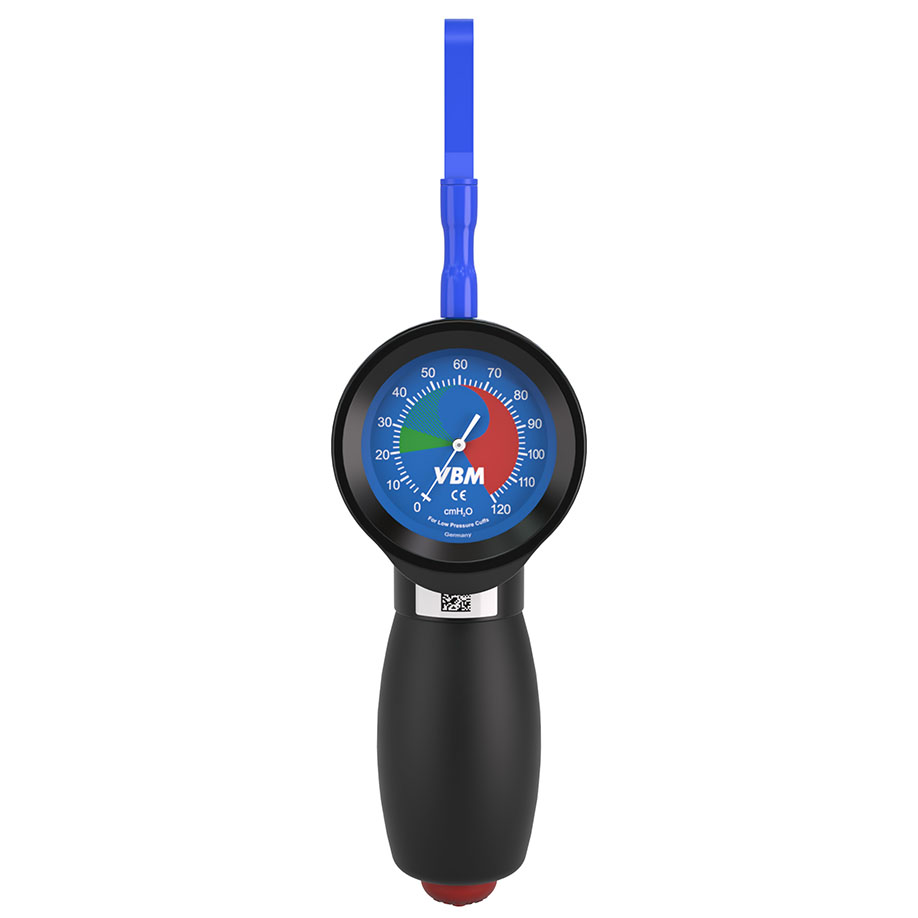 Das VBM-Cuffdruckmessgerät wird angewendet, um den Druck der Cuffs von Trachealtuben und supraglottischen Atemwegshilfen anzupassen und zu kontrollieren. Das ergonomisch geformte Cuffdruckmessgerät ist kompakt, robust und tragbar. Es zeichnet sich durch Genauigkeit und Präzision aus. Das analoge System ist unabhängig von Energiequellen und benötigt daher keine Stromversorgung oder Batterien. Die farbkodierten Bereiche auf der Skala helfen dabei, den idealen Druck anzuzeigen um den kapillaren Blutfluss in den Trachealschleimhäuten aufrechtzuerhalten.