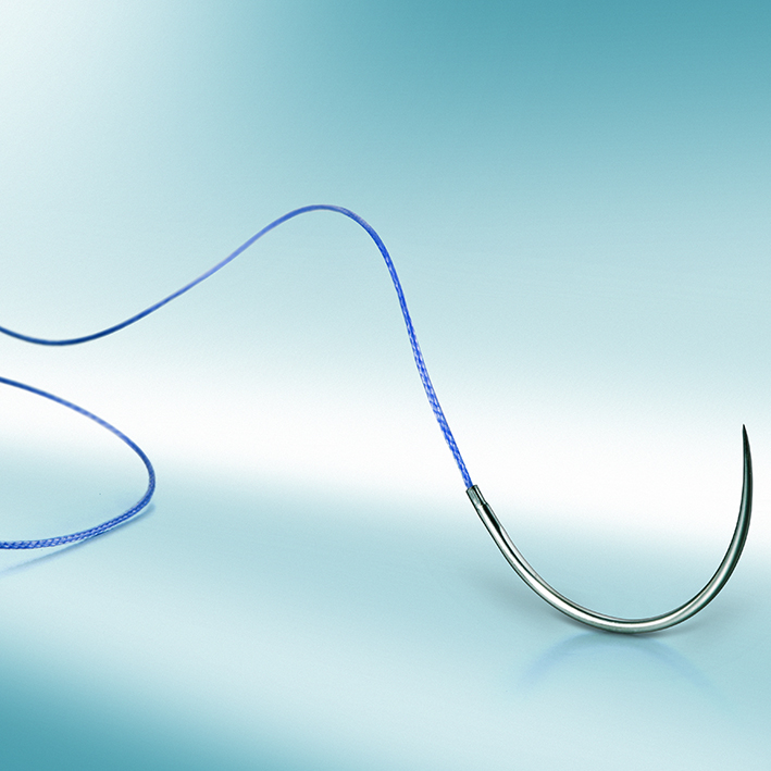 Novosyn® ist ein mittelfristig reißfestes, resorbierbares, geflochtenes chirurgisches Nahtmaterial, das aus einem Copolymer aus 90 % Glykolat und 10 % L-Laktat besteht. Hervorragender Knotenlauf, exzellenter Knotensitz bereits bei der ersten Schlinge, ausgezeichnete Knotenrepositionierung, deutlich geringere Gewebereaktion für eine optimierte Wundheilung. 75 % verbleibende Reißfestigkeit nach 14 Tagen, 50 % nach 21 Tagen, 25 % nach 28 Tagen, vollständige Resorption nach 56 bis 70 Tagen. Nadeltyp: 1/2 Kreis Rundkörper-Nadel 22 mm.